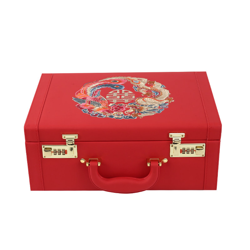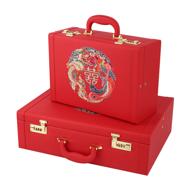 Marriage bride dowry box red box engagement wedding gold box leather box Xiuhe clothing dowry box official box password box