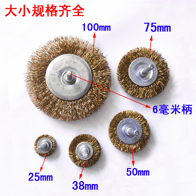 6MM with shank electric wire brush Rod Flat Type Rust Removal Wire Polished Wheel Grinding Head Manufacturer Direct Wire Diameter 3 0