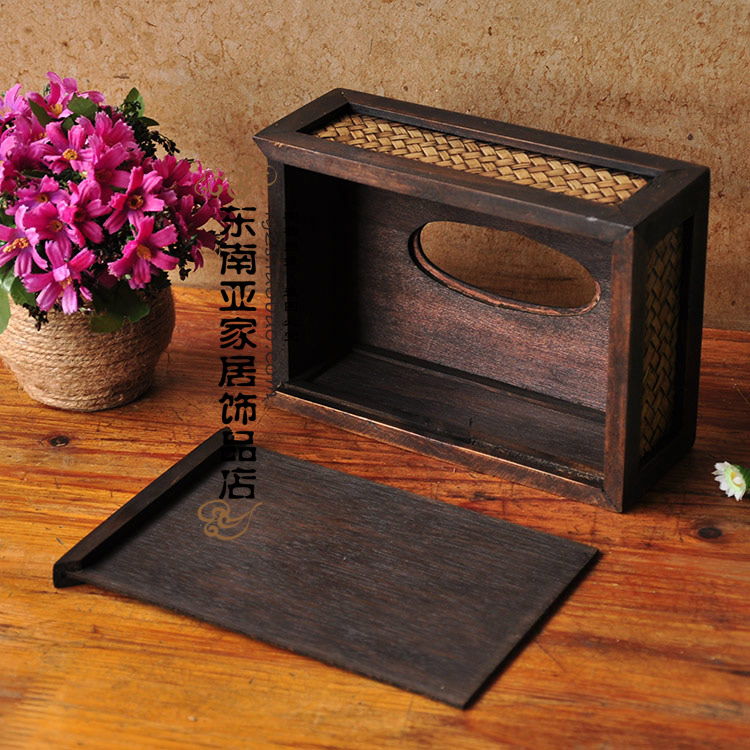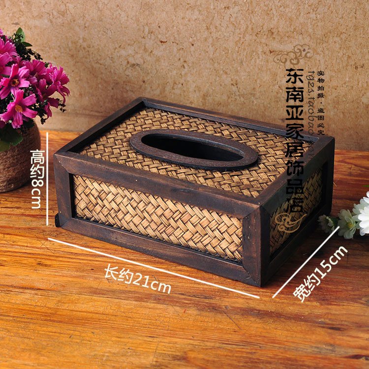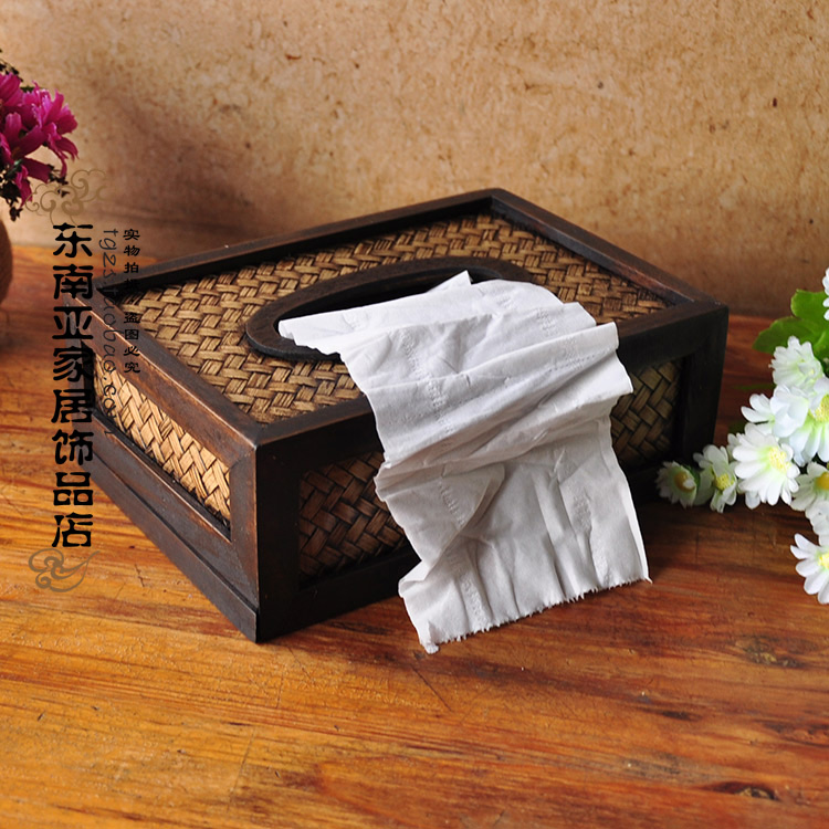 Thai Crafts Gifts Swing Accessories Creative wood and wood paper towels box toilet paper box Retro high-end hotel Dining Room Hotel Decorated Paper Towel Box