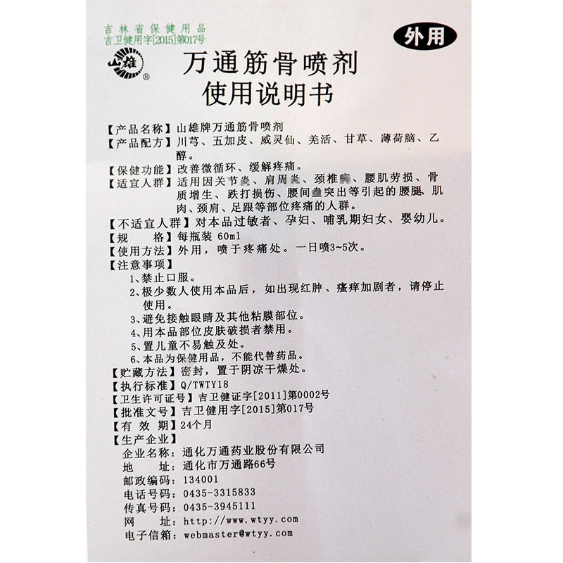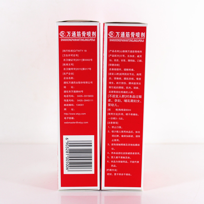 Jilin Tonghua Shanxiong brand Wantong bone spray 60ml Lumbar leg pain Cervical spine pain Joint shoulder pain bruise injury