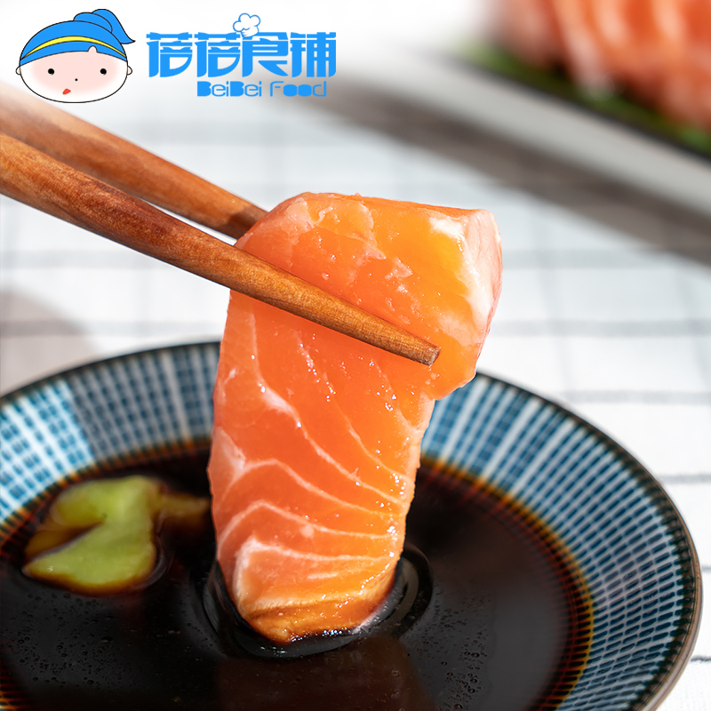 Imported new Norwegian piece salmon Atlantic salmon sashimi sent mustard soy sauce slices need to be noted
