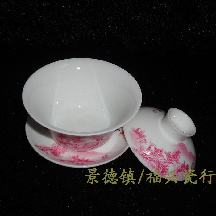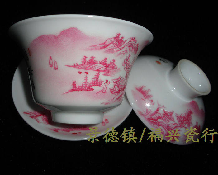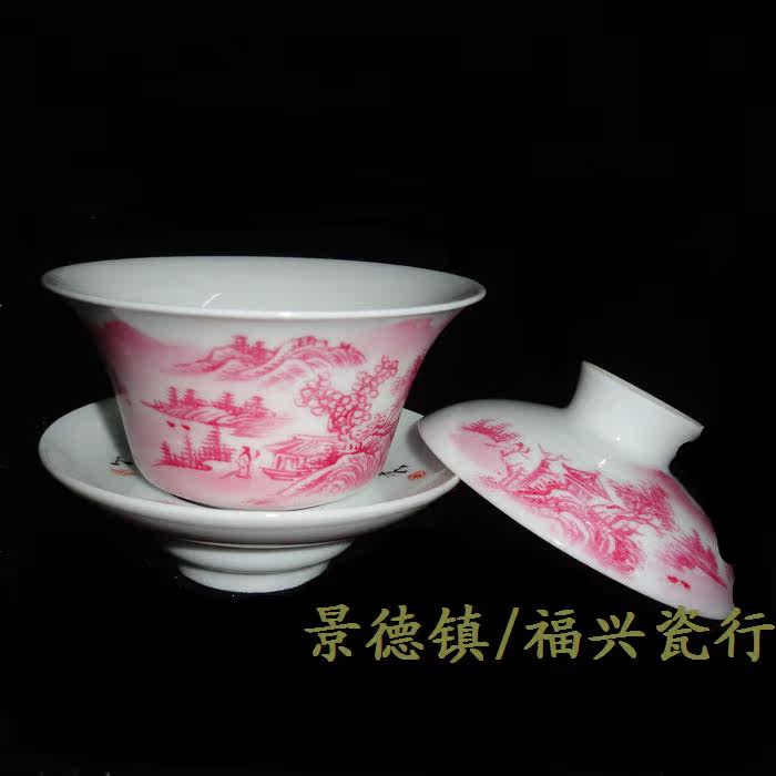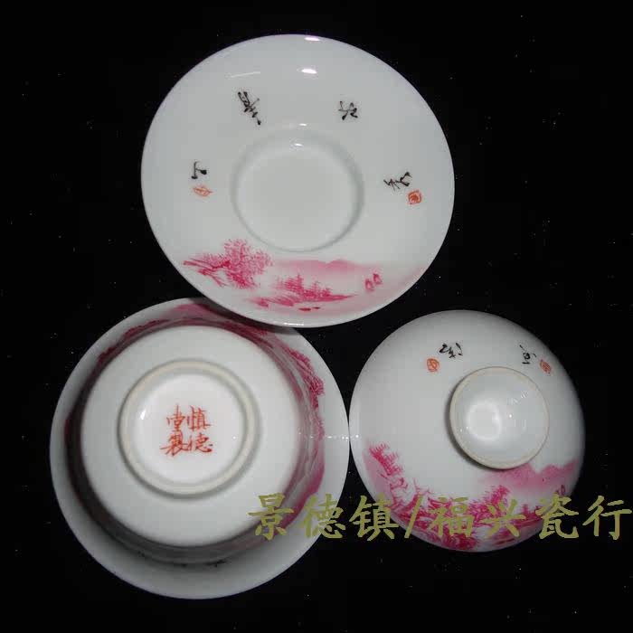 Jingdezhen Cultural Revolution Factory goods porcelain by hand draw Manao Hongshan Water cover Bowl Gai Cup Cultural Revolution Collection Package Old
