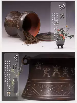 Qinzhou Nixing pottery ancient rhyme tea Jar Ornaments Gu'an pottery bronze drum shape tea can Large 1kg
