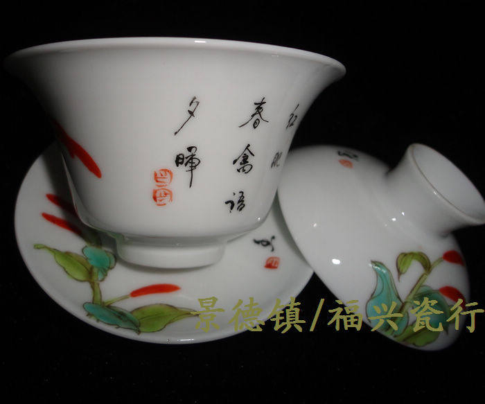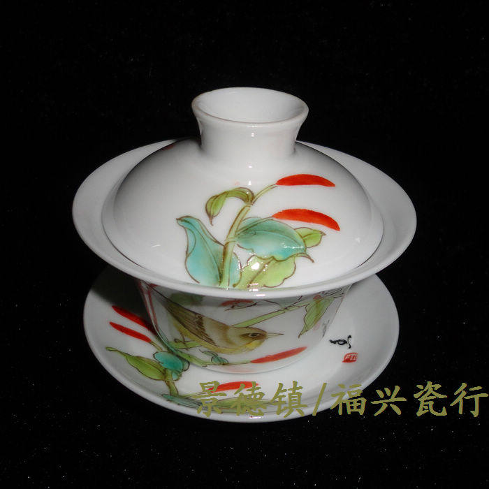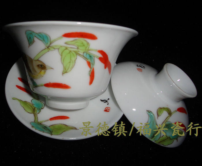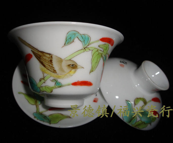 Jingdezhen Cultural Revolution Factory goods Porcelain Powder Colored Hand-painted Flower bird Tuyelloweg Bowl Tea Cup Three Bowl of Horse Shoe Cup