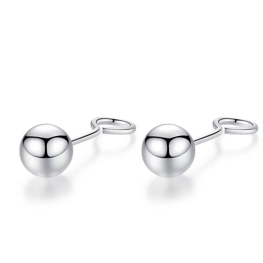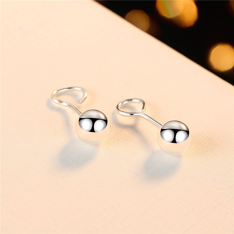 s99 foot silver earrings female Korean version simple round pearl earrings men's foot silver bean ear needle anti-allergy bending hook ear decoration-Taobao