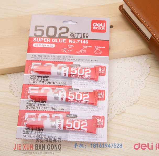 Deli 7146 glue 502 fast super glue adhesive plastic metal glass ceramic 3 grams