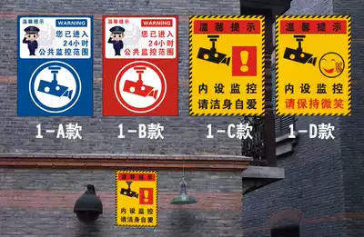 There is a monitor in the reflective luminous luminous area with a monitor entering the 24-hour surveillance area camera warning sticker sign