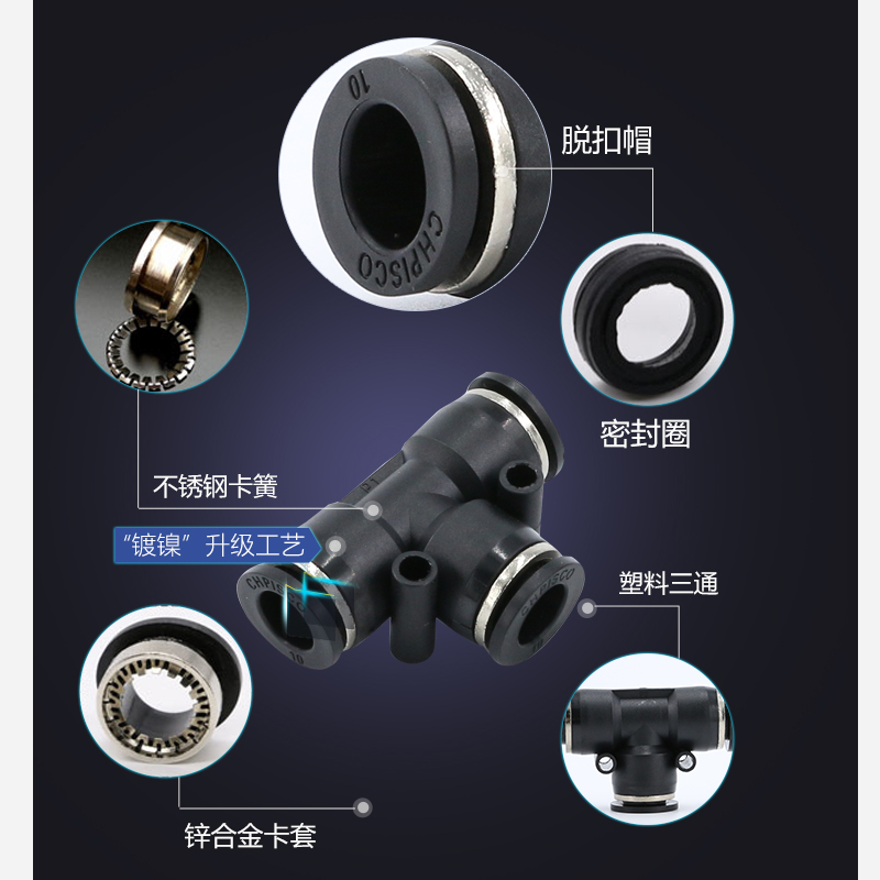 Black hat PE-4 three-headed mm trachea black hat PE-6 three-headed 6mm tracheal black hat PE-8 three-headed 8mm tracheal black hat PE-10 three-headed 10mm gas