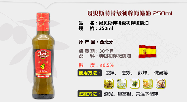 Special Class Juicing Olive Oil 250ml Spain Original Imported Vial Edible Oil Cold Mixed Vegetable Salad Skincare