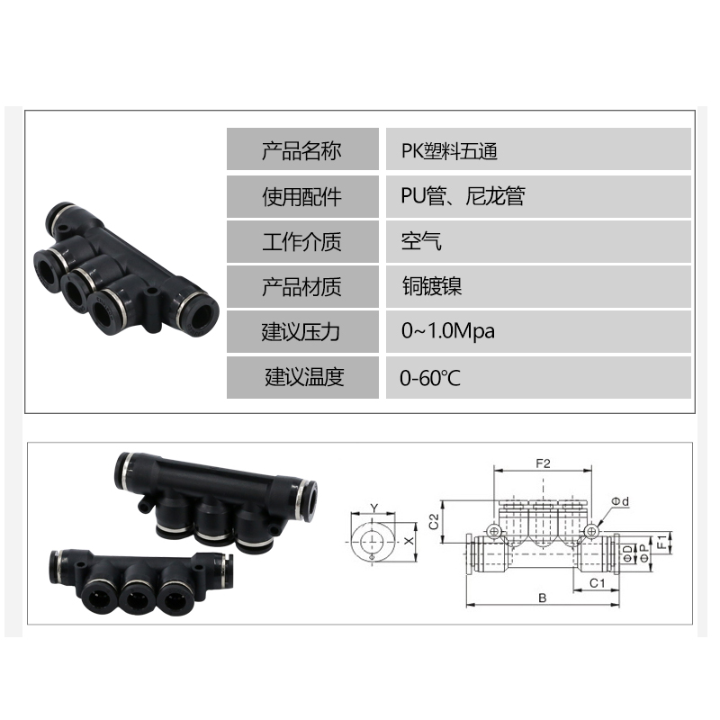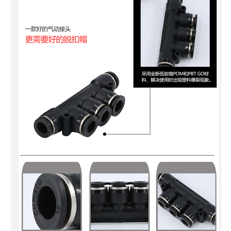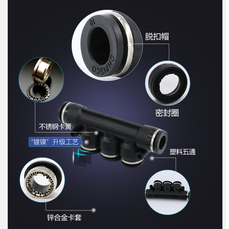 Black hat PK-4 five-head plug 4mm trachea black cap PK-6 five-head plug 6mm trachea black cap PK-8 five-head plug 8mm trachea black cap PK-10 five-head plug 10mm