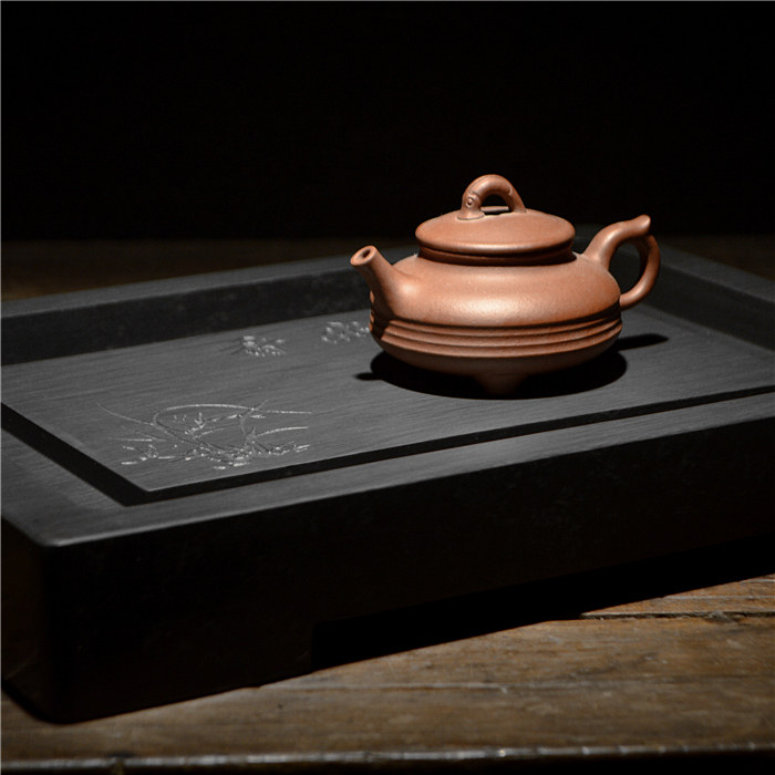 Tea tray delicate fragrance small tea sea tea set Natural She inkstone water ripple inkstone tea tray black gold stone tea sea tea set