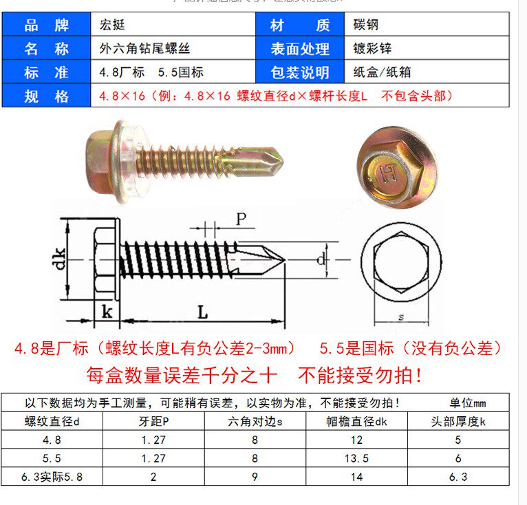 Macro-quite with cushion drill tail screw 4 8 self-tapping self-drilling colored steel tile dovetail screw 12 55 55 60 65 70 75