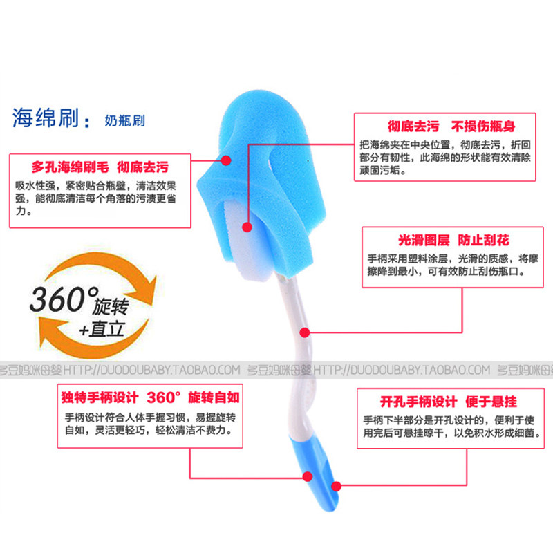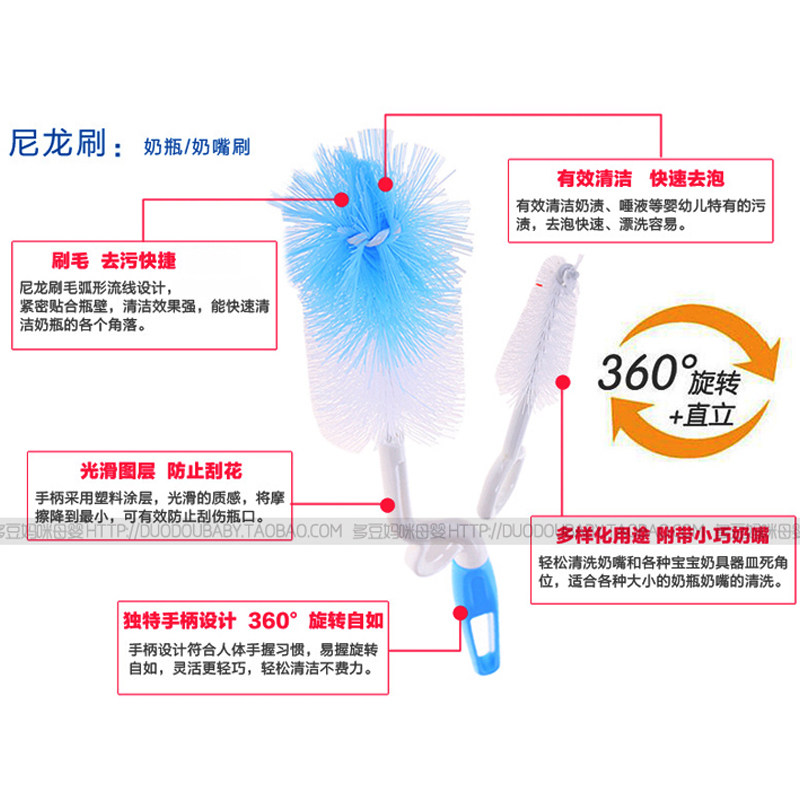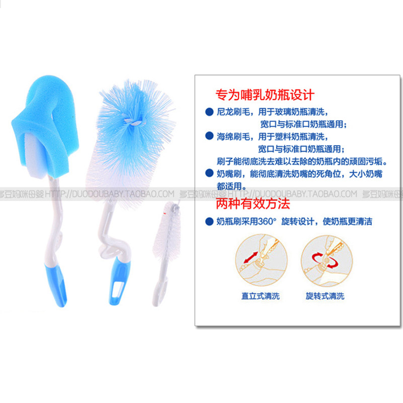(9 8) bottle brushed pacifier brushed sea cotton nylon three-piece suit 360-degree rotatable bottle brush