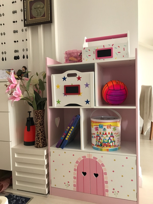 Girl creative cartoon bookcase with door Children's bookcase Pink bookcase Simple free combination storage locker