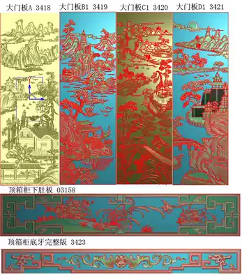 Shanshui top cabinet wardrobe set drawing computer engraving machine precision carving map grayscale relief drawing material file Wired