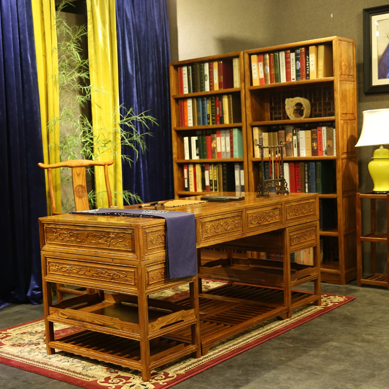 Solid wood office table and chair boss table desk antique Chinese furniture South elm desk painting case Table big class