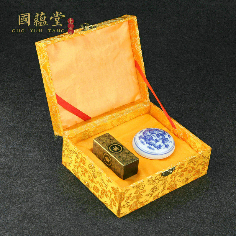 Yellow Dragon Weave Brocade Box Seal Stone Packaging Box Upscale Seal Gift Box Delivery Man With Face