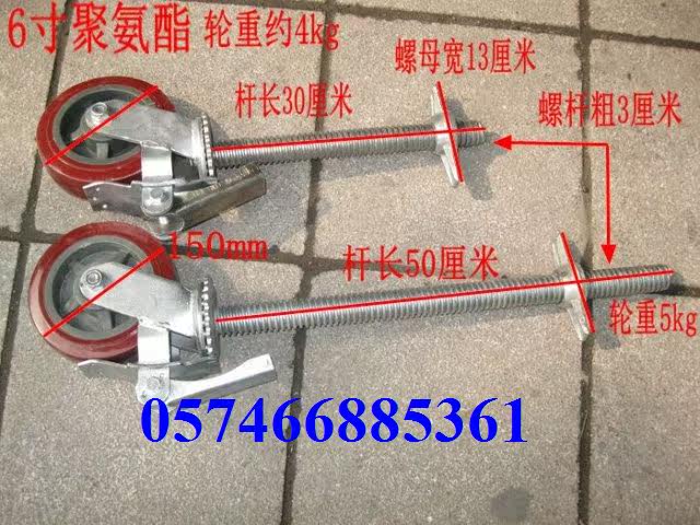 6 inch polyurethane extended screw scaffolding universal brake wheel adjustment rod moving scaffold universal wheel