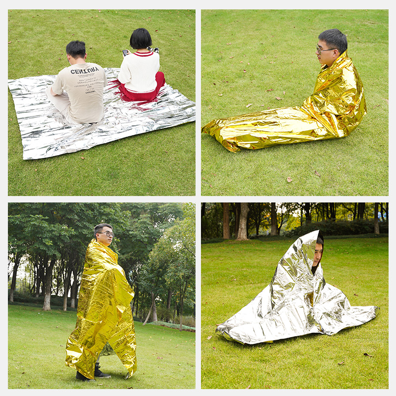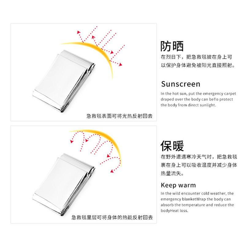 Outdoor emergency survival first aid blanket Tinfoil aluminum foil thickened insulation blanket Off-road portable compression warm life-saving blanket