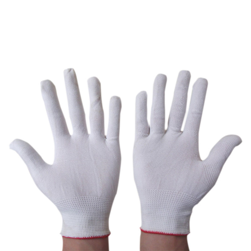 Nylon red border labor line gloves dust-free firm wear-resistant operation protective gloves white thin gloves