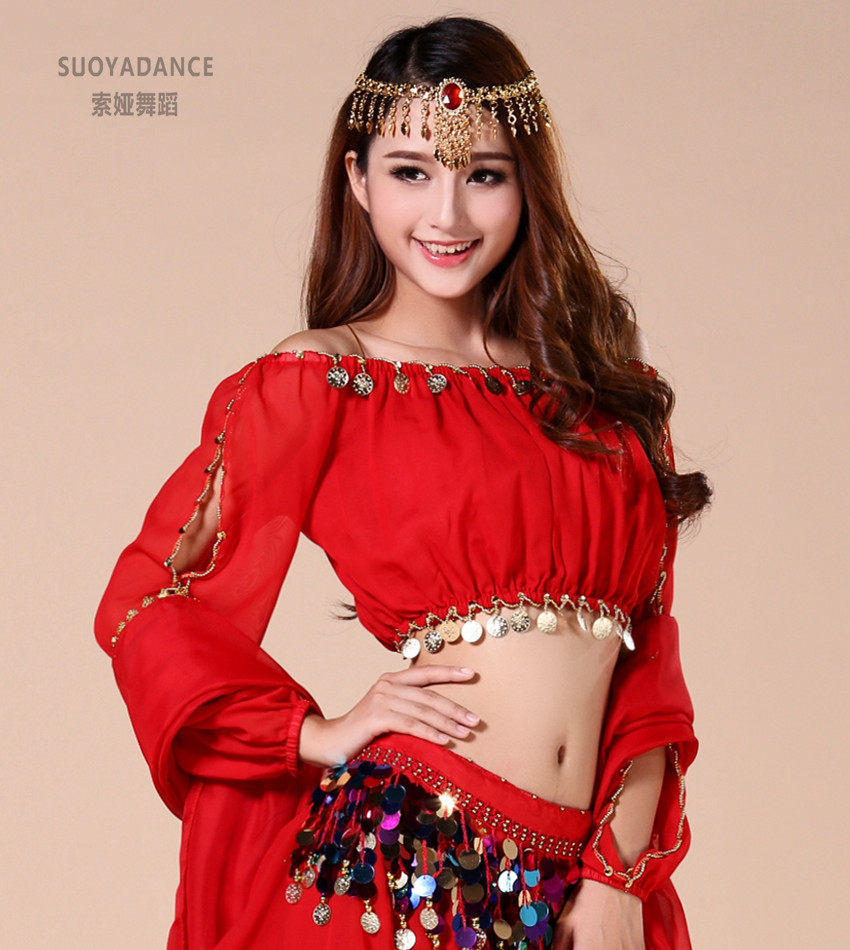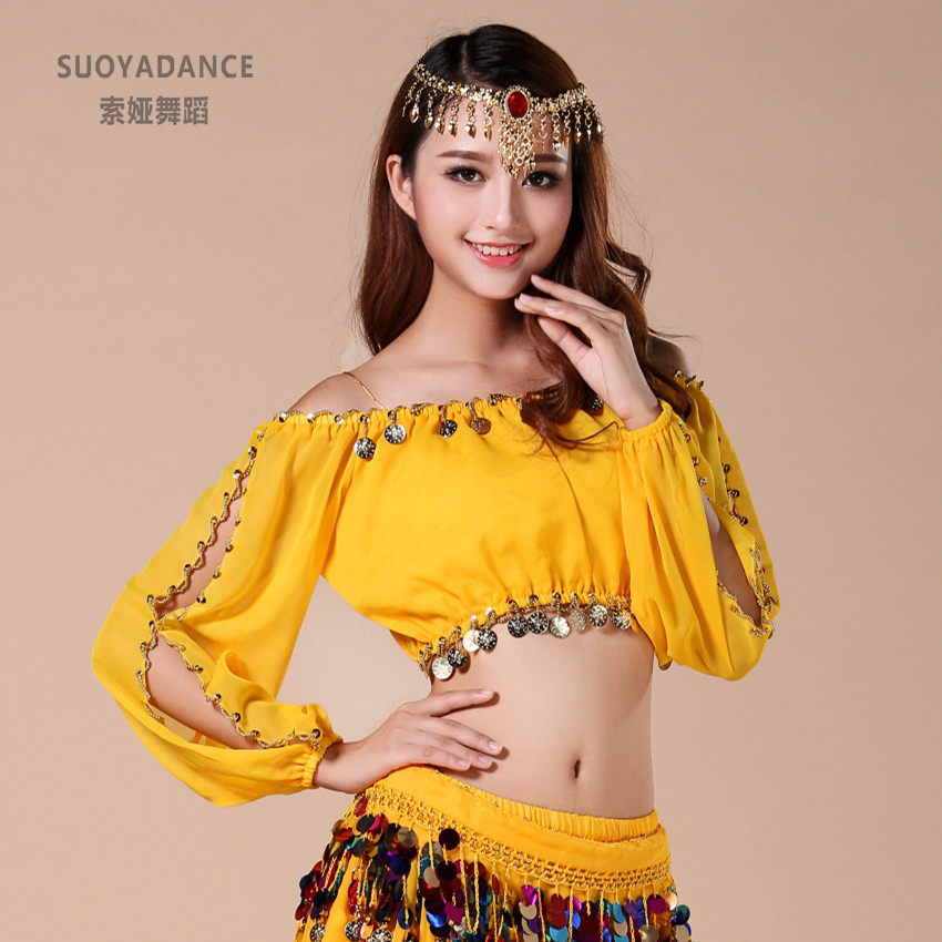Belly dance dress New blouses Indian dance practice clothes on dance Out of service lantern sleeves Long sleeves 61