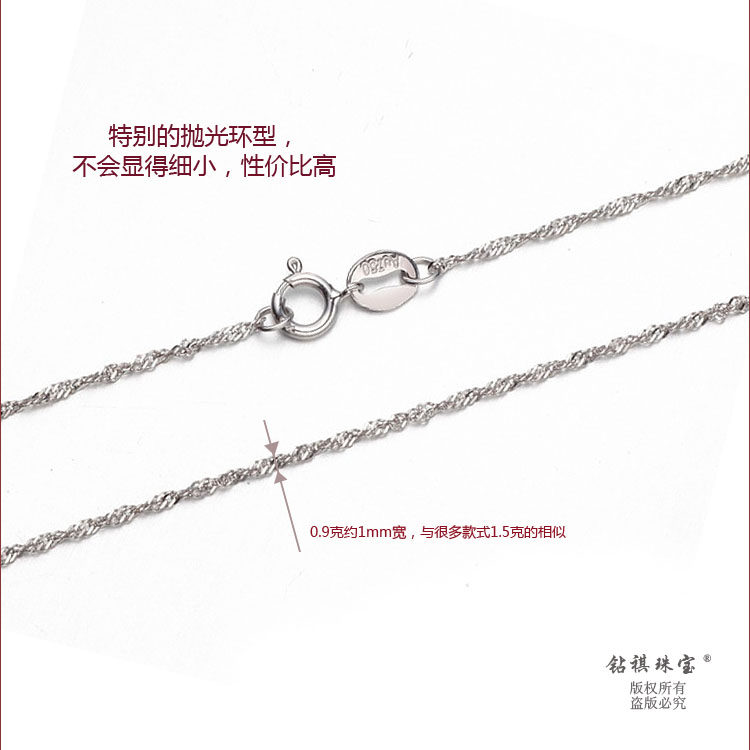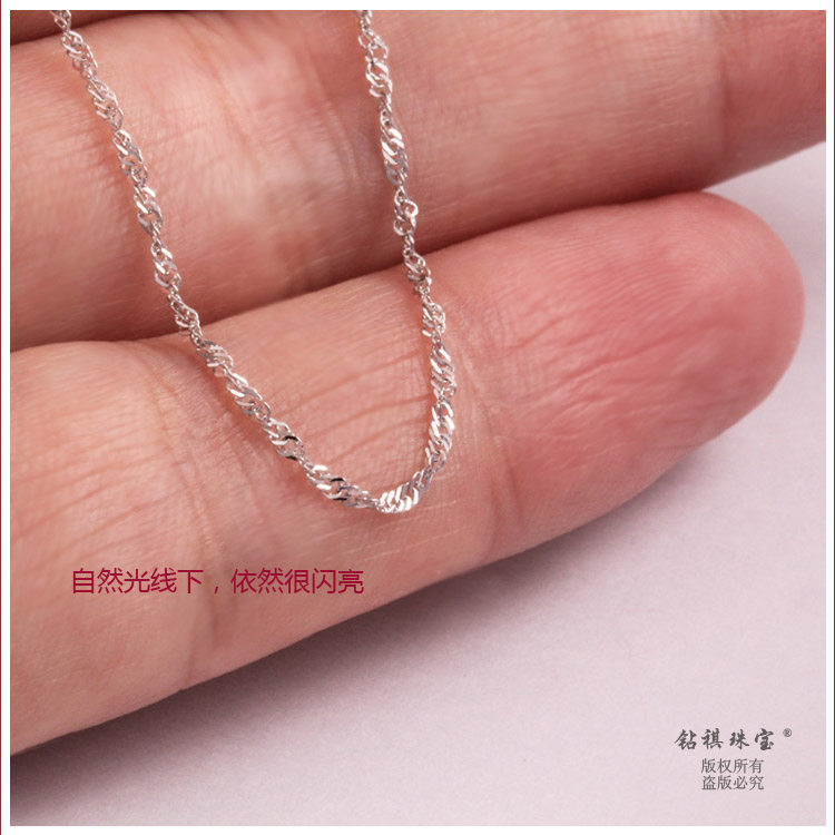 Diamond Qi 18K white gold necklace Cost-effective water ripple chain Clavicle chain Single flash belt certificate Wild with certificate
