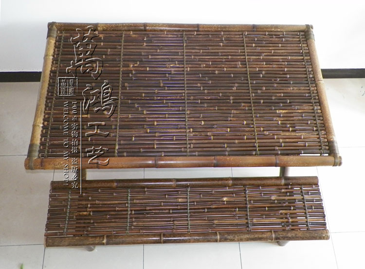 Brace table without partition two benches brace table with partition brace table with partition one bench two short stool Bench Bamboo Stay House Matching Table And Chairs