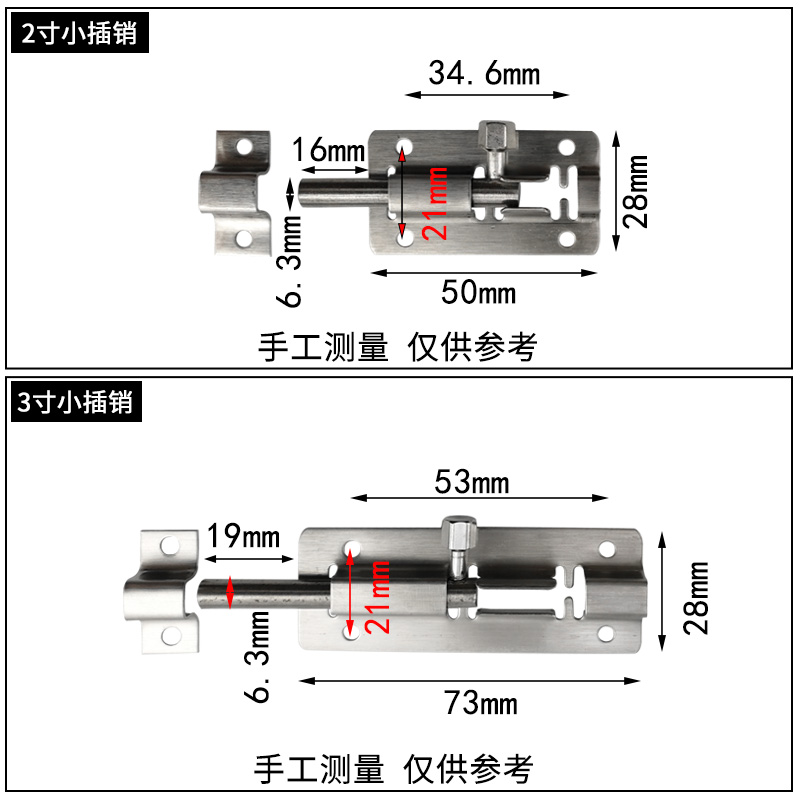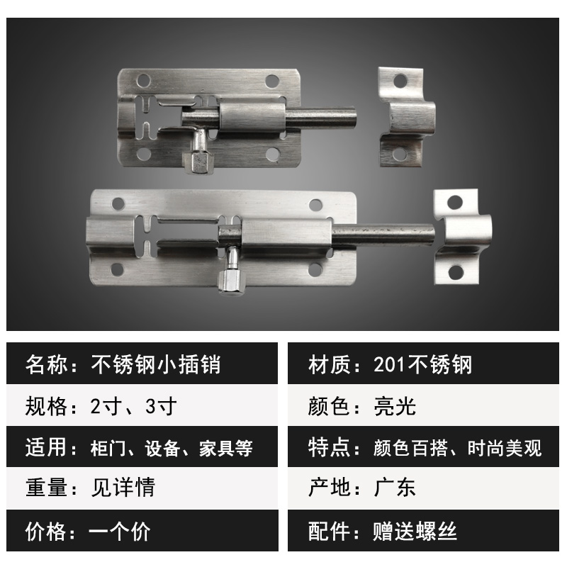 2-inch bolt stainless steel bolt door latch inner bull door bolt 3-inch clear bolt door insert book cabinet door bathroom door small bolt