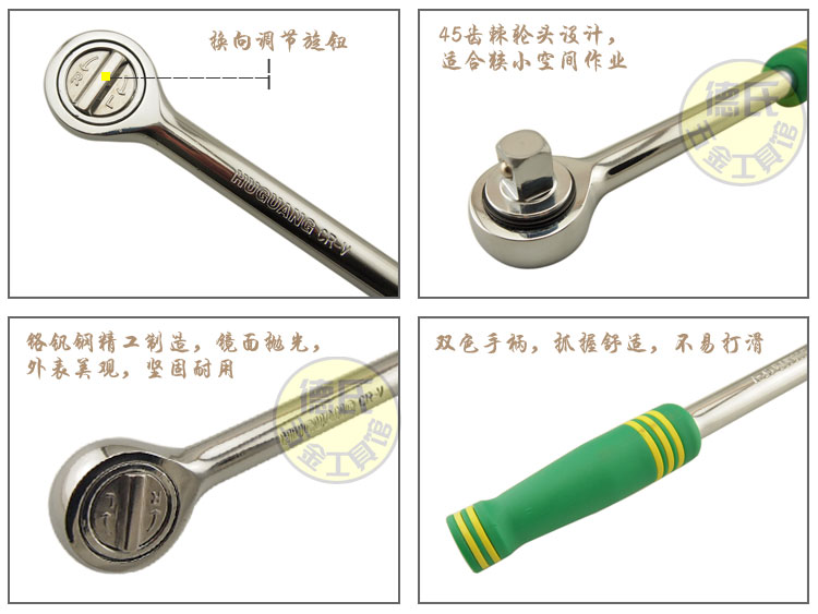 Huguang Tools 1 2 big fly chrome vanadium steel ratchet wrench two-way quick fly wrench 45-tooth ratchet socket wrench
