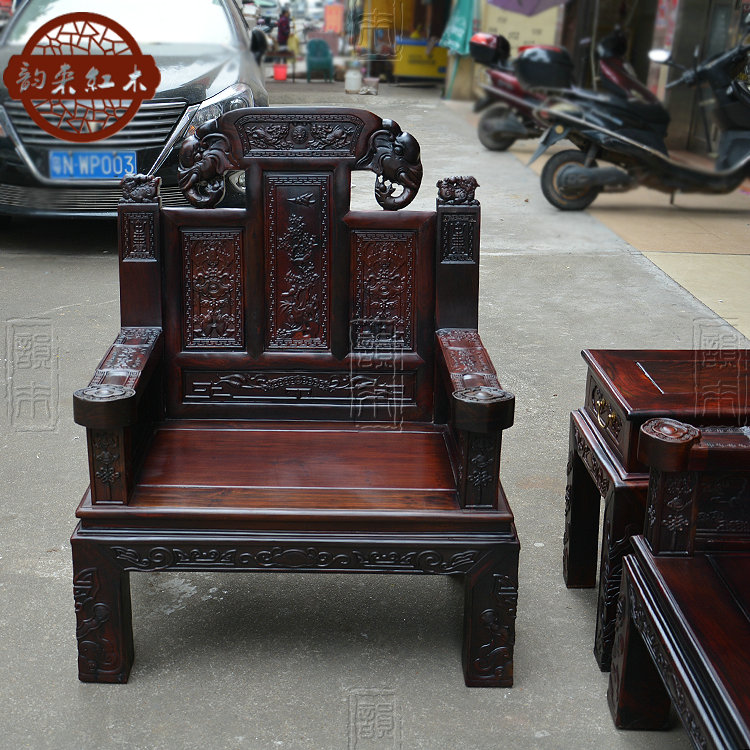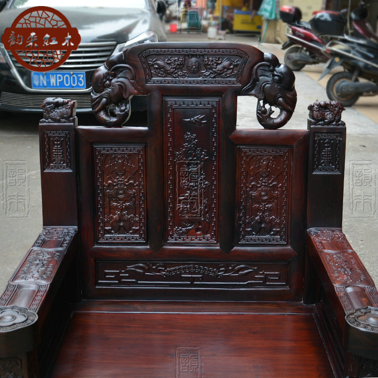 Lao Great Red Acid Branches Engraving Ruyi Elephant Sofa Six Pieces Solid Wood Red Wood Sofa Living-room Composition Furniture