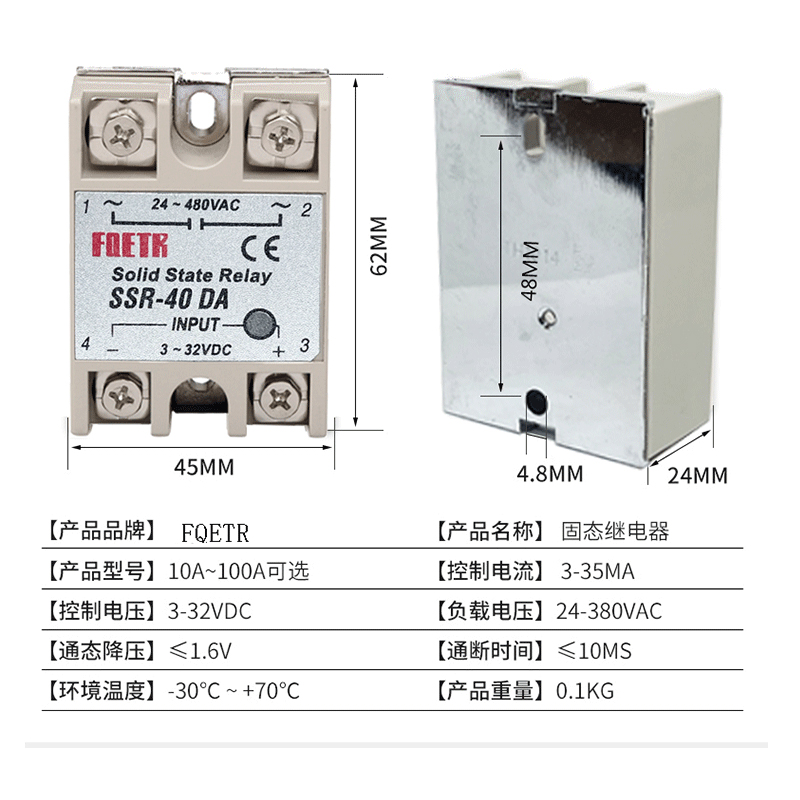 Single phase solid state relay SSR40DA DC controlled AC 380v40a Small solid state Class B