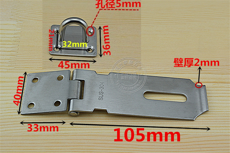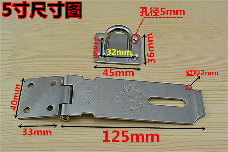 Pure 304 stainless steel thickened padlock plate Miner furniture integral cupboard room door buckle 3 inch 4 inch 5 inch lock catch
