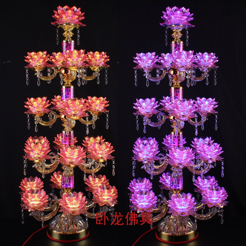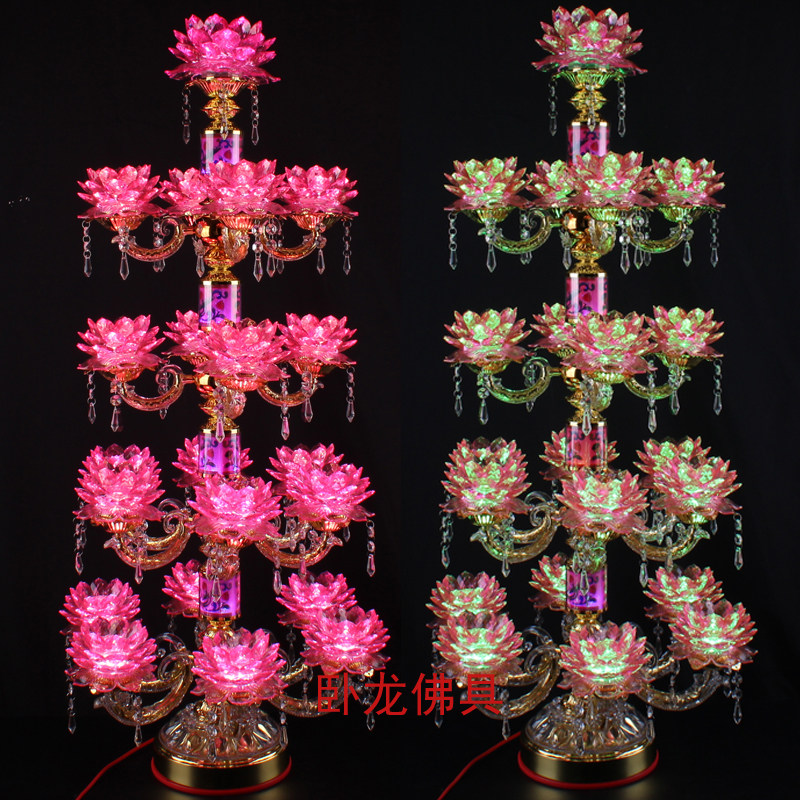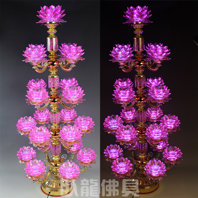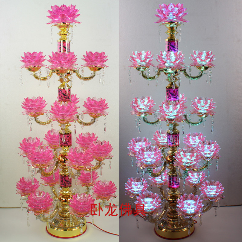 Twenty-one pins LED colorful imitation crystal lotus lamp floor lamp for Buddha lamp temple hall Buddha offering lamp Buddha hall lamp
