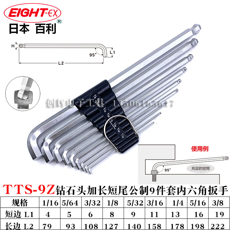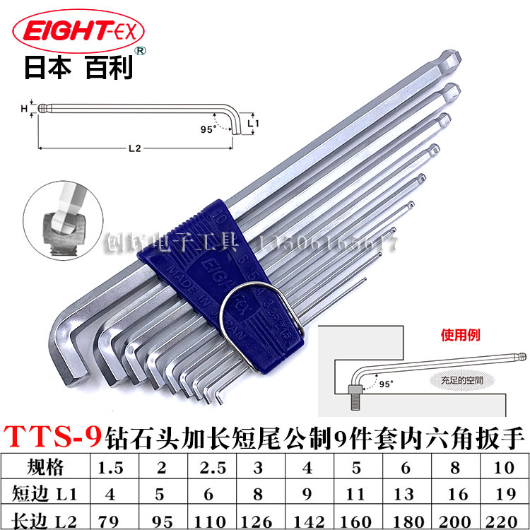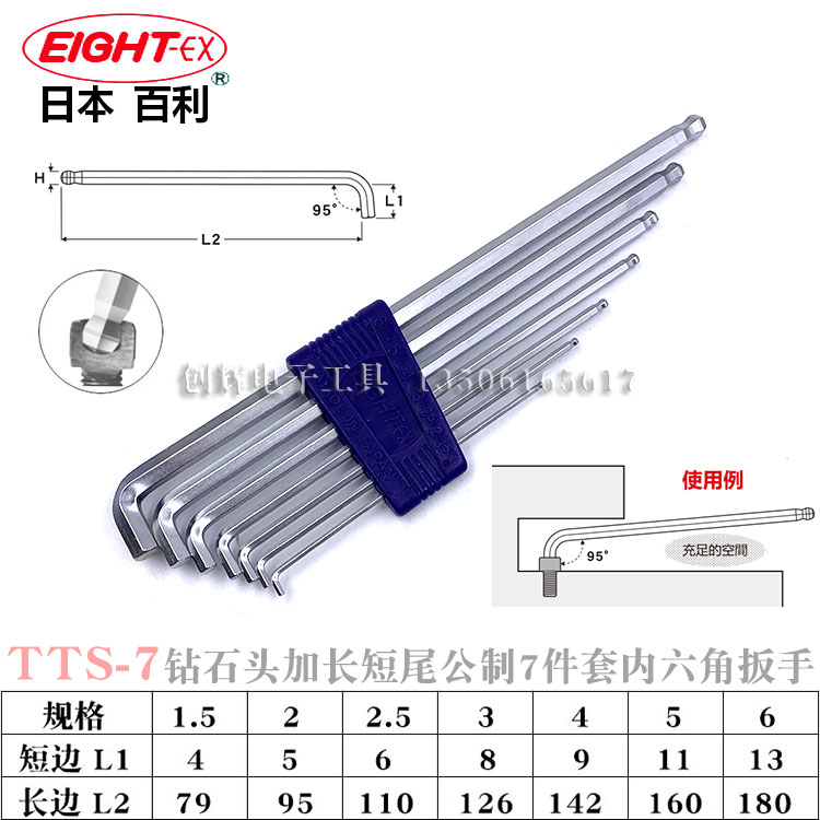 Japan EIGHT Bailey imports short tail diamond head inner hexagon wrench TTS-7 9Z metric Ying made 6 corner wrench