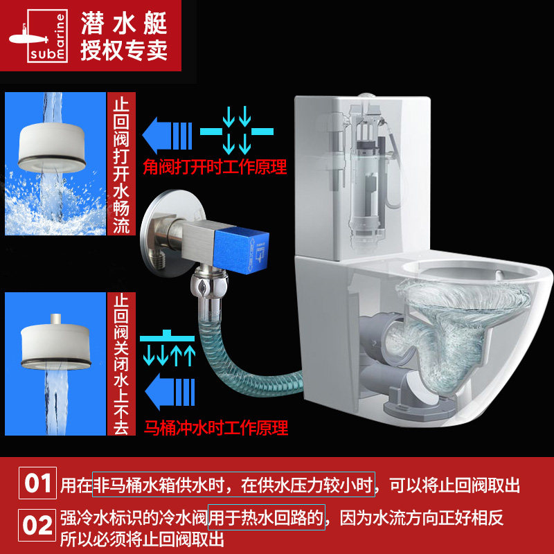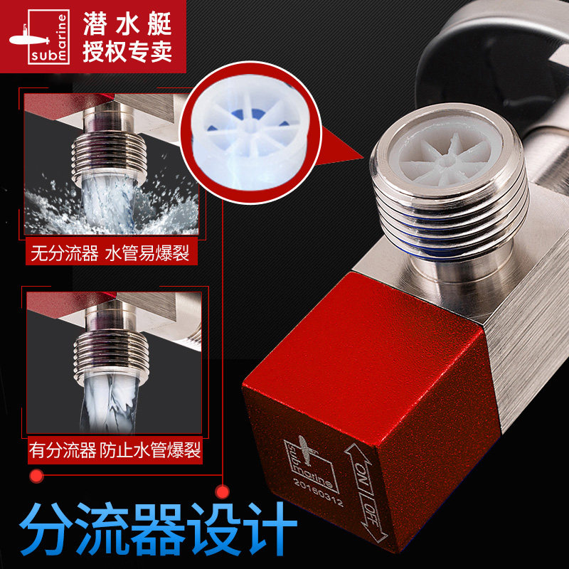 Submarine hot and cold water universal angle valve brass thickened explosion-proof leak-proof toilet check valve triangle valve