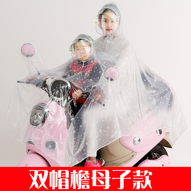 Double single raincoat electric children's battery Female parent-child full body self-electric riding transparent summer mother and son raincoat