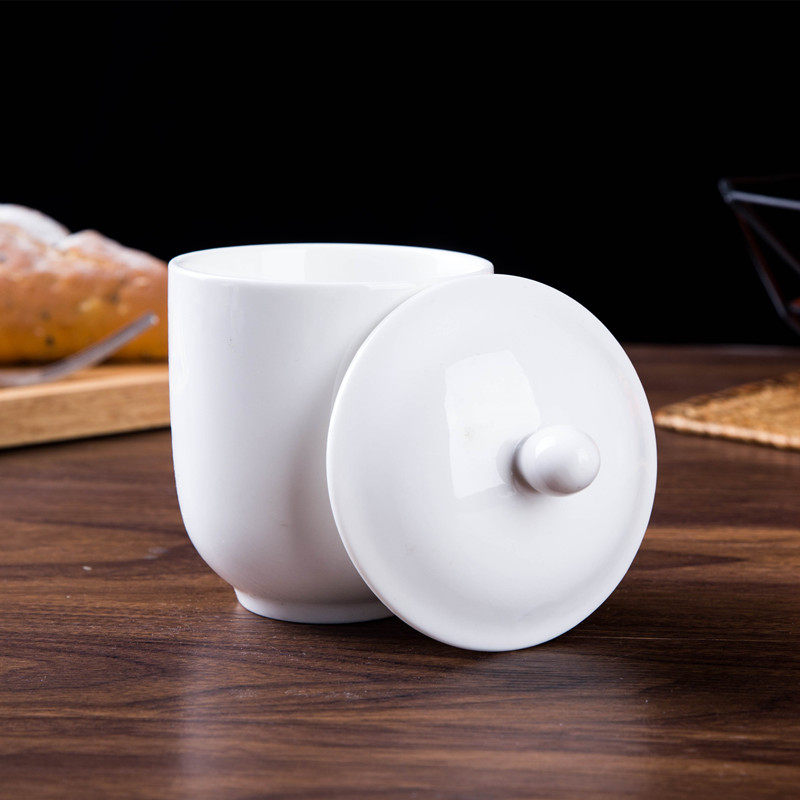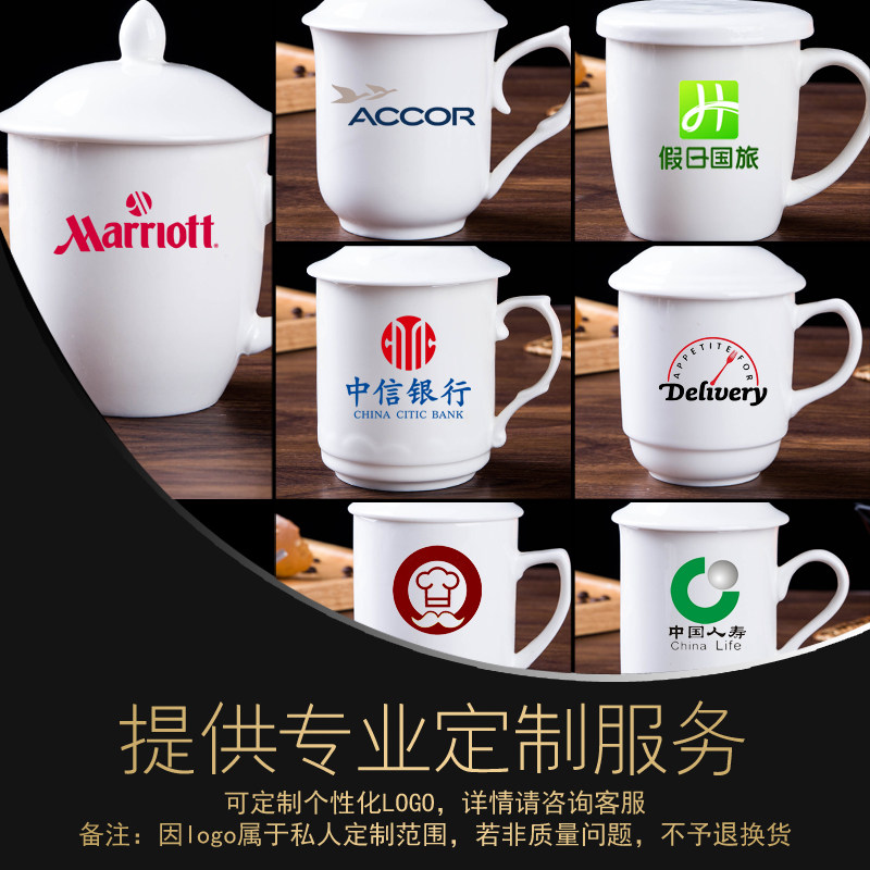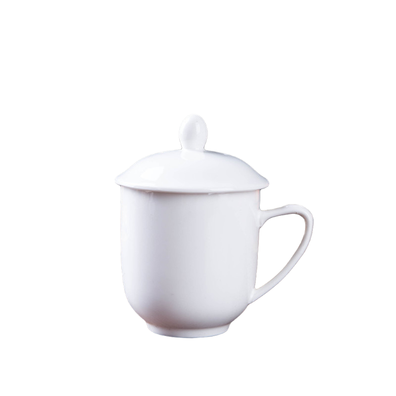 Magnesium White Porcelain Hotel Room Hotel Ceramic Teacup with Lid Large Water Cup Office Meeting Cup Dehuajie Cup