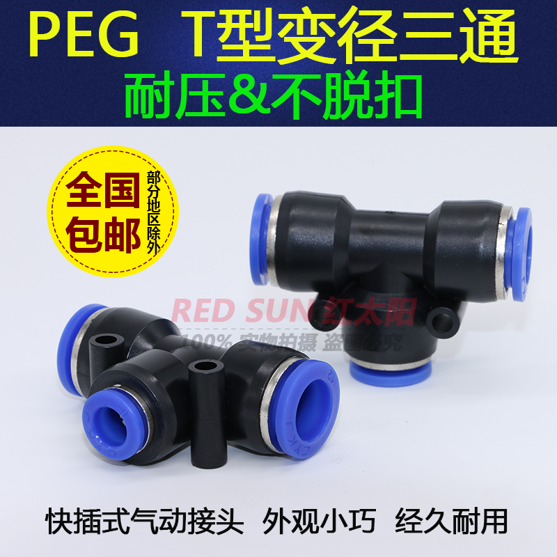 Pneumatic quick insert quick plastic windpipe heterodiameter T type tee PEG10-8 variable diameter conversion size head 12-6 joint