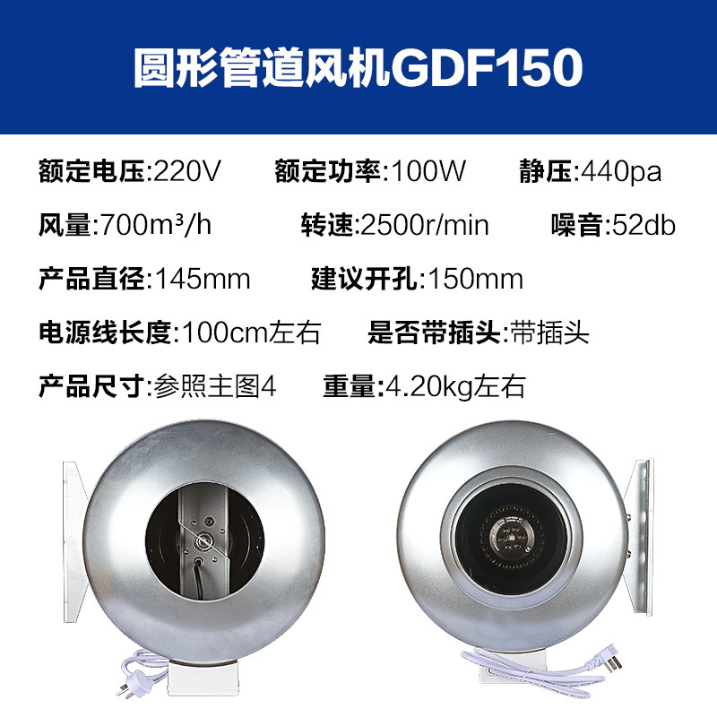 Feiyue all-metal circular duct fan 150 strong exhaust fan kitchen range hood exhaust fan ventilation fan 6 inch