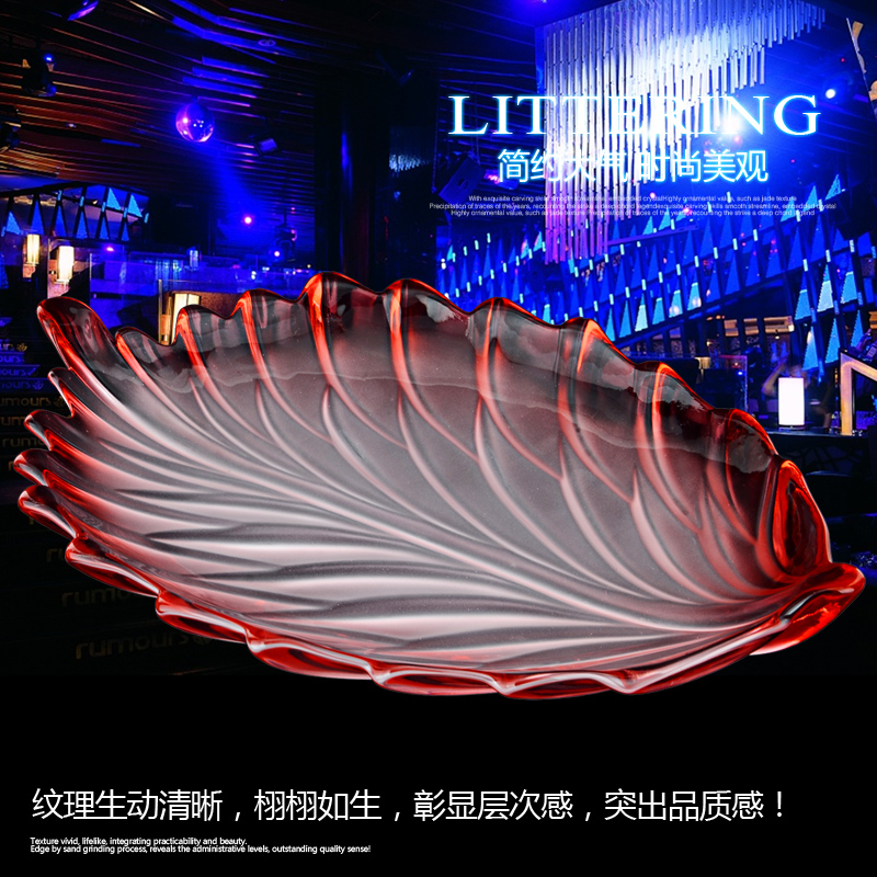 Feather Big fruit platter Frosted Purple feather Big fruit platter Frosted Red Feather Big fruit platter Transparent Feather Big fruit platter Glass gold