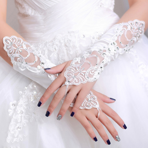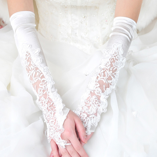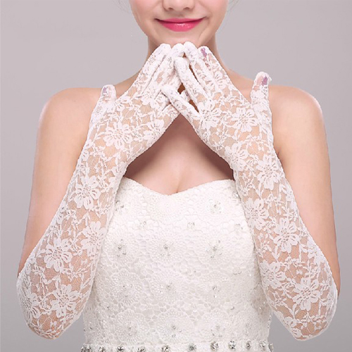 Wedding gloves Bride wedding lace Long white Red wedding hand yarn Satin Super Sen Sen vintage winter