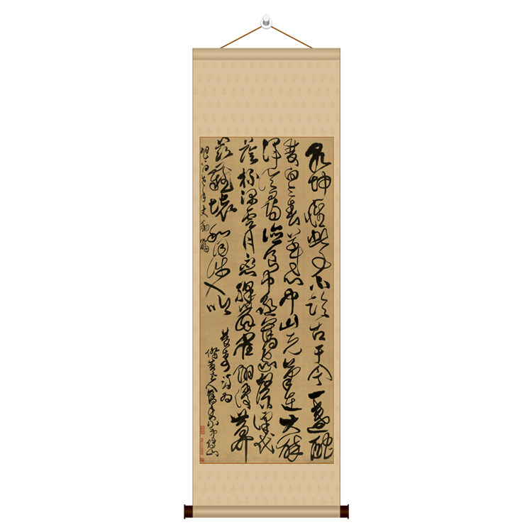 Shuangshou Poetry Five-foot Banner Vertical Scroll Antique Cursive Brush Calligraphy Soft Mounted Decorative Calligraphy and Painting Fu Shan