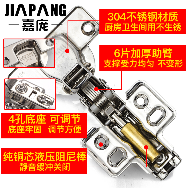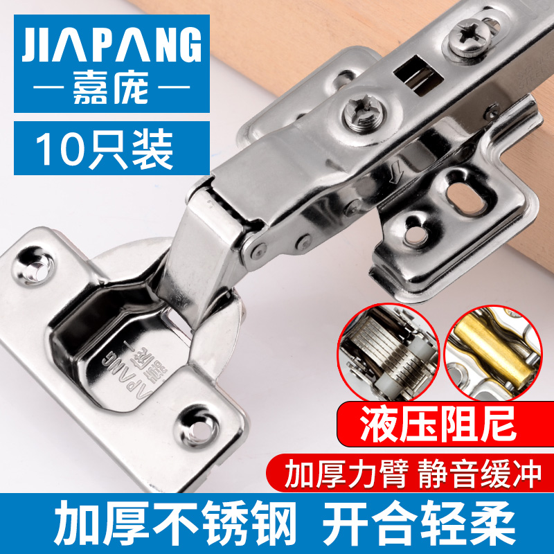 Jiapang cabinet door hinge stainless steel damping hydraulic buffer cabinet door hinge fittings hinge copper full cover core 10 pieces