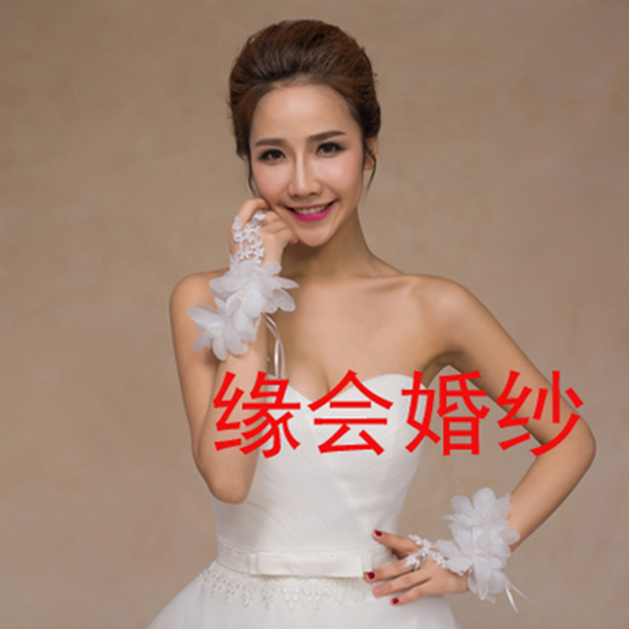 Spring Summer Red Milky White Cropped Bridal Wedding Dress Lace Mesh Gloves