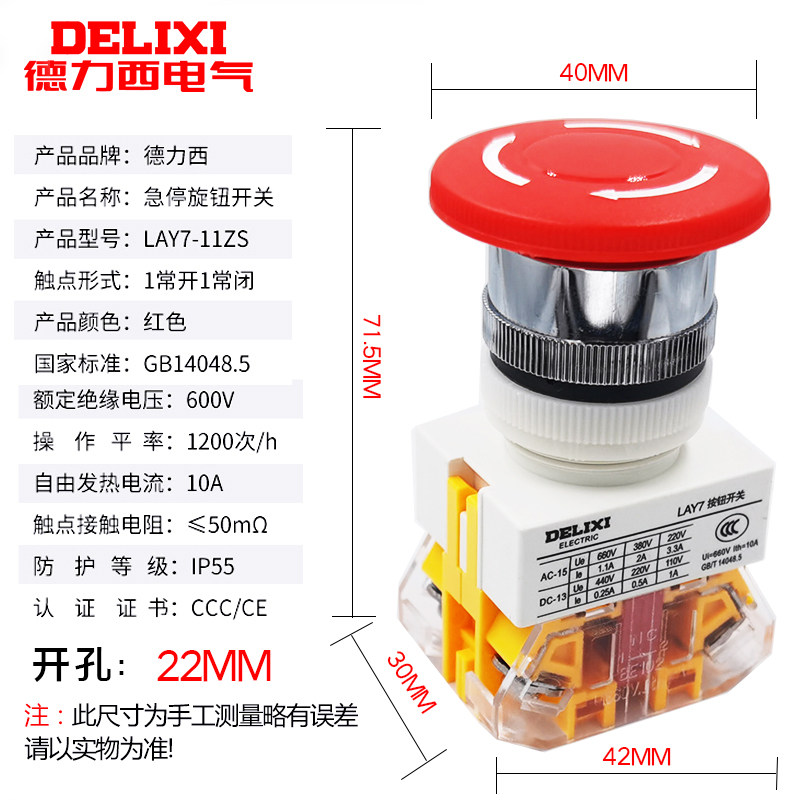 Delixi emergency stop switch mushroom head self-locking push button switch LAY7-11ZS one on one off