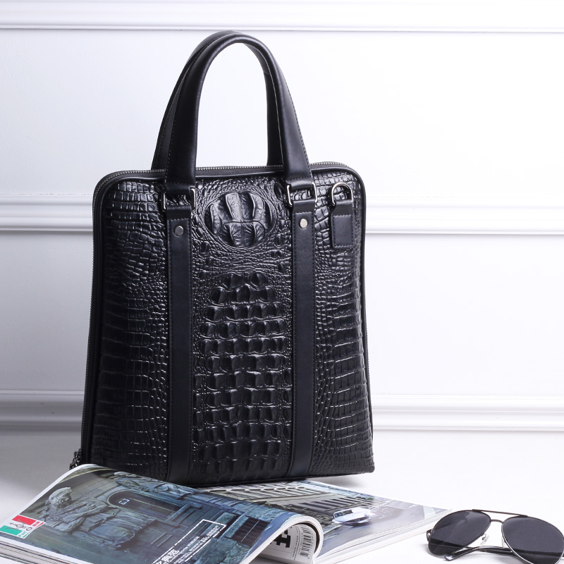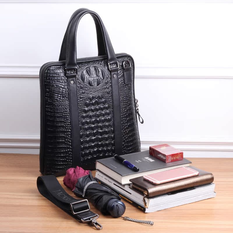 Crocodile pattern men's bag men's shoulder Messenger bag vertical portable briefcase men's leather bag business leisure bag