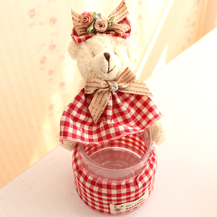 Field Garden Wind creative pen holder Lattice Rose Butterfly Knot Little Bear Glass Bottle Swing princess Desktop containing box