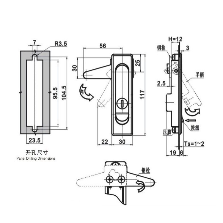 MS730 lock distribution box lock switch cabinet door lock MS504 plane lock
