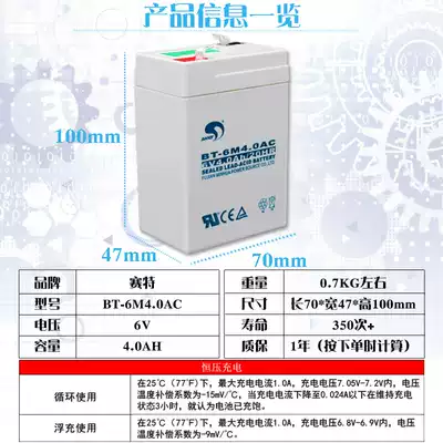 SAITE BT-6M4 0AC battery 6V4Ah charging 20HR electronic scale Stroller children's toy car 6 volt battery