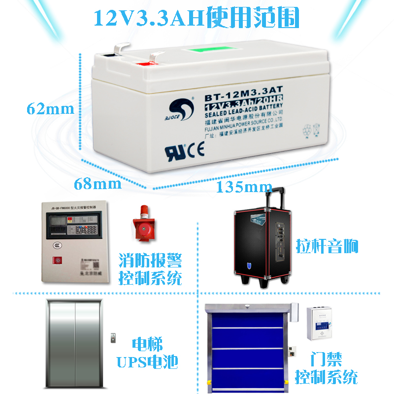 Sett 12V3 3AH 20HR 20HR BT-12M3 BT-12M3 3AT accumulator elevator fire host 12 V